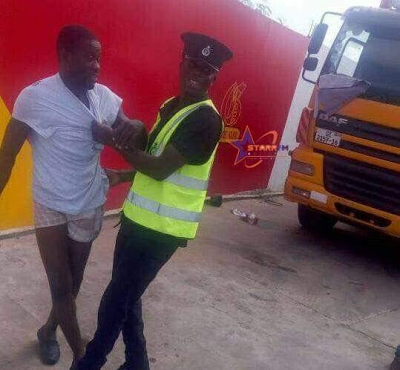According to a report by Star FM Ghana, the Police officer accosted the cab driver identified as Kwabena Danso at a Fuel Station after allegedly jumping the light and ended up tearing apart his clothing.